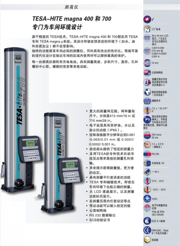 產(chǎn)品簡(jiǎn)介 product presentation 商品名稱(chēng) 瑞士 TESA 高度 儀 型號(hào) TESA-HITE MAGNA 400/700 測(cè)量范圍 0-415/715mm 分辨率 0.001mm 供 應(yīng) 商 佛山市精測(cè)計(jì)量?jī)x器設(shè)備有限公司 產(chǎn)品概述 product presentation TESA......